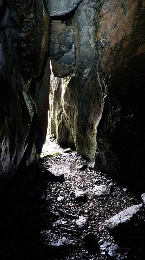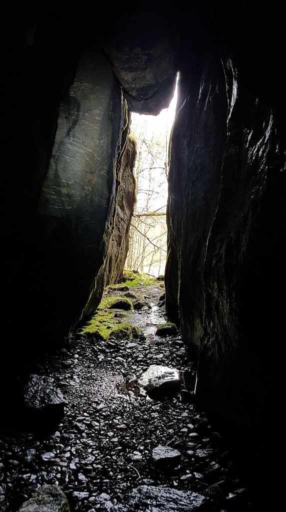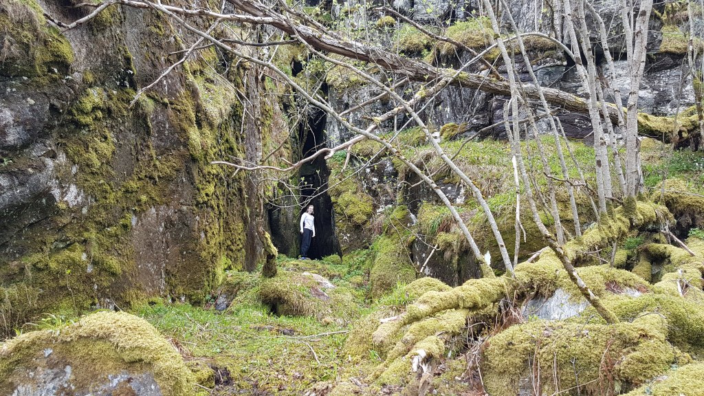 Oksebåsen er ca 10 meter dyp, 3-4 m høy.